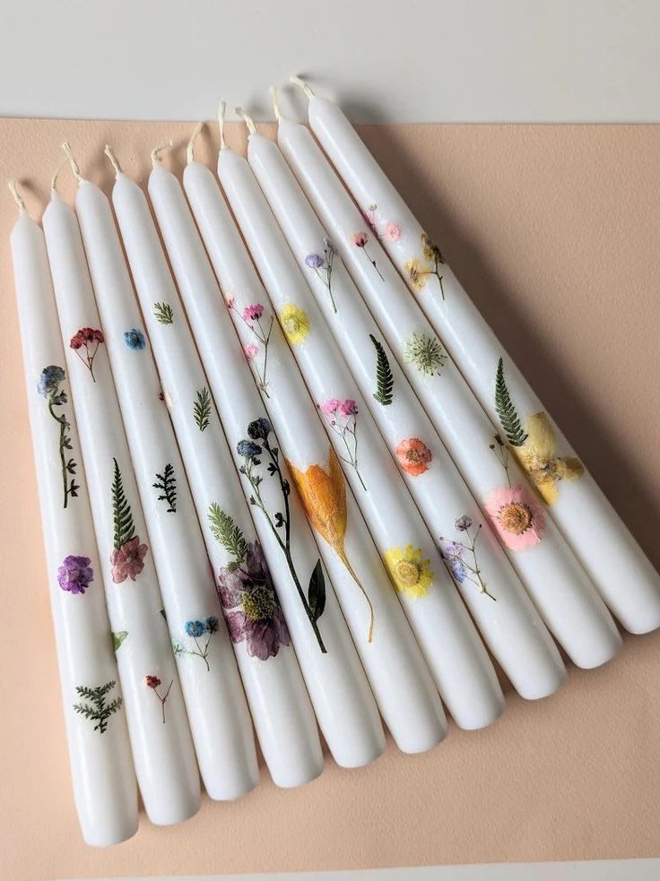 Pressed Flower Tapered Candles